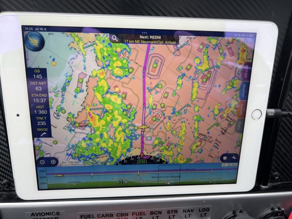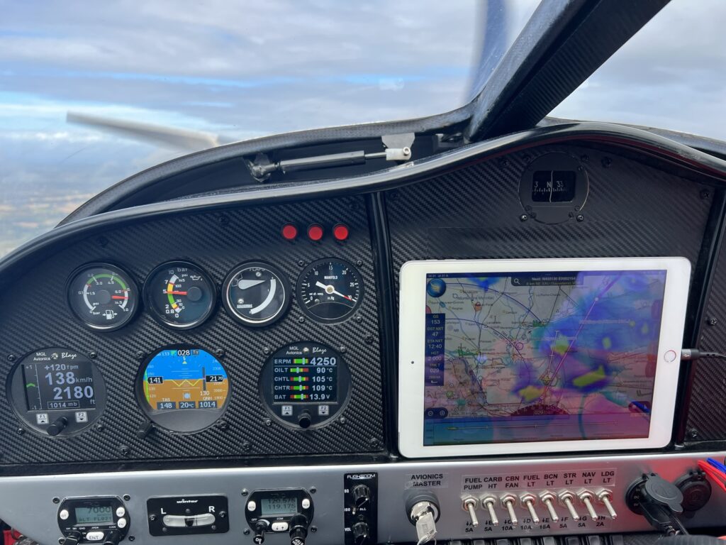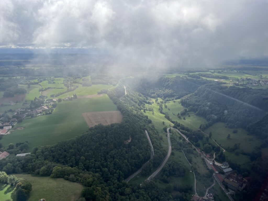Jenže… Následující den bylo celé dopoledne deštivo. Využili jsme jej k lehkému home officu a do vzduchu se dostali až kolem druhé hodiny odpolední. Vzhledem k přecházející frontě jsem trasu volil přes jednotlivá letiště tak, abychom vždy měli nějaké v 15 minutovém dosahu – na toto je Francie ideální. Navečer jsme přistáli opět ve Freiburgu, dotankovali, na chvíli do města a spát.