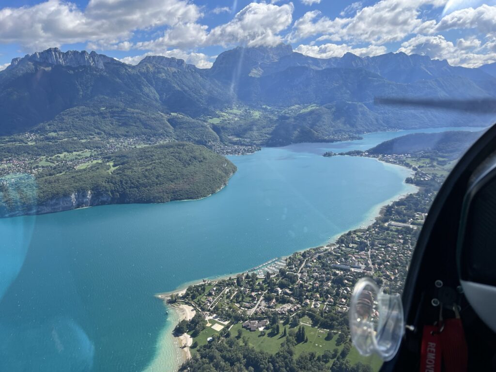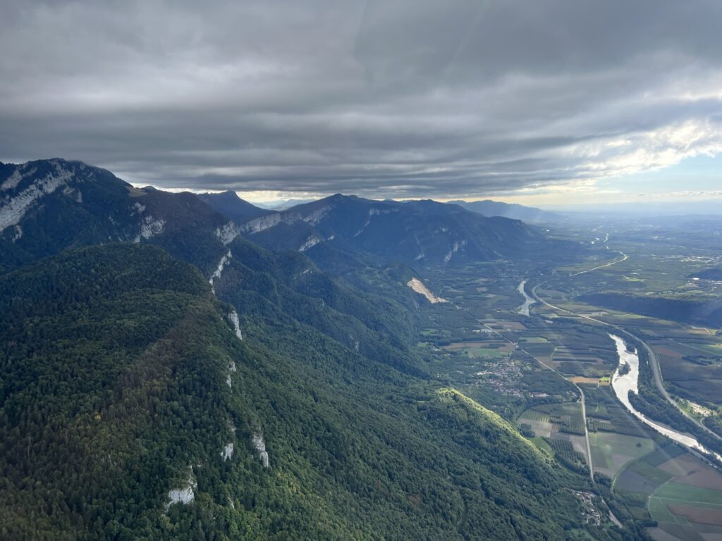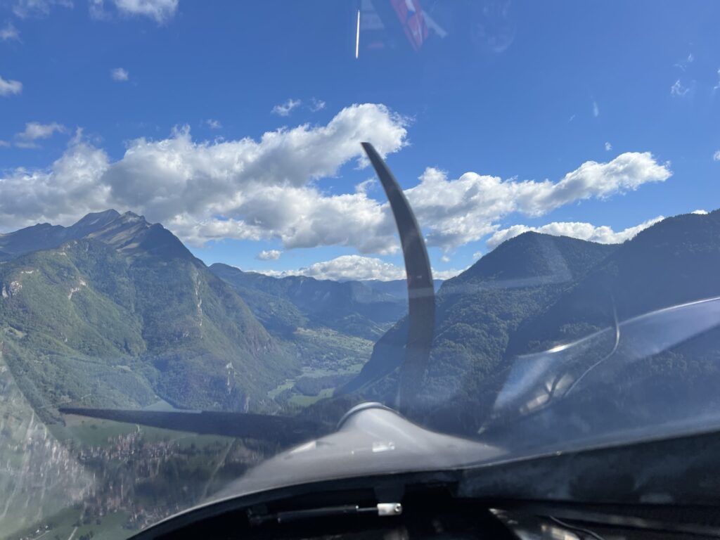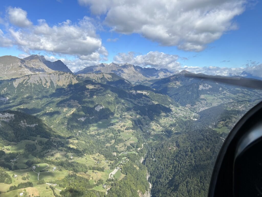 Lehké zklamání z toho, že si do zápisníku nezapíšu své první horské letiště, vzápětí vystřídalo nadšení. Horský terén poklesl, před námi se rozprostíralo velké údolí a na jeho konci Mont Blanc! Výše, než kam jsme vůbec byli schopni s naším drobkem dostoupat, napůl skrytý v mracích. Působil majestátně. Když jsem pod ním jako malý stál poprvé, ani ve snu by mě nenapadlo, že si tam jednou odpilotuji svoje malé letadlo.