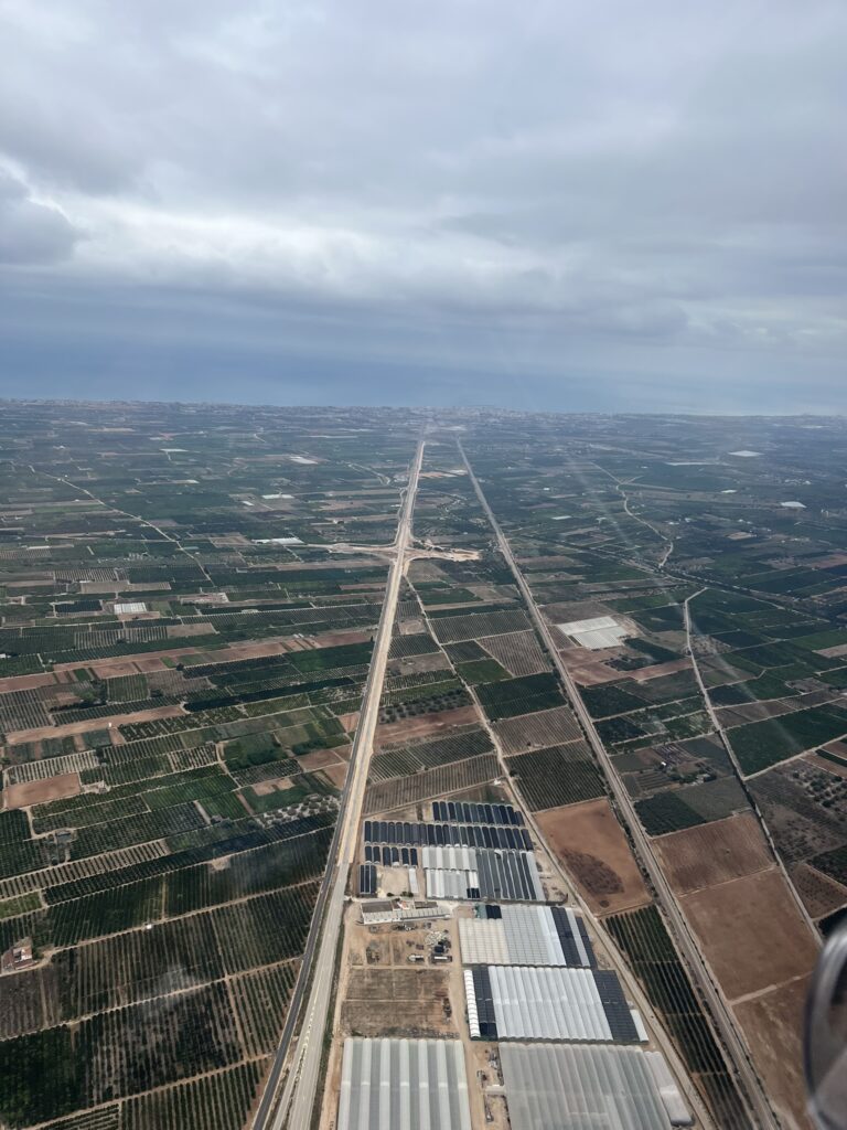 Neděle nám přinesla vytoužené Španělsko. Odlet z Carcassone s mezipřistáním na tankování v Perpignanu a pak už ve sluchátkách poslouchat španělštinu. Fantazie! Pyreneje jsme přelétali v cca 7000 stopách, níže byl vzduch značně neklidný. S ohledem na čas jsme vynechali prozkoumání Andorry a namířili to přímo do Castellónu.