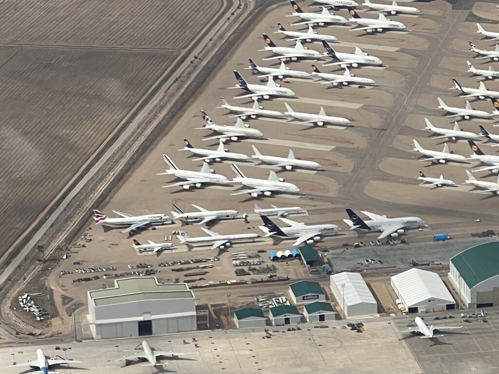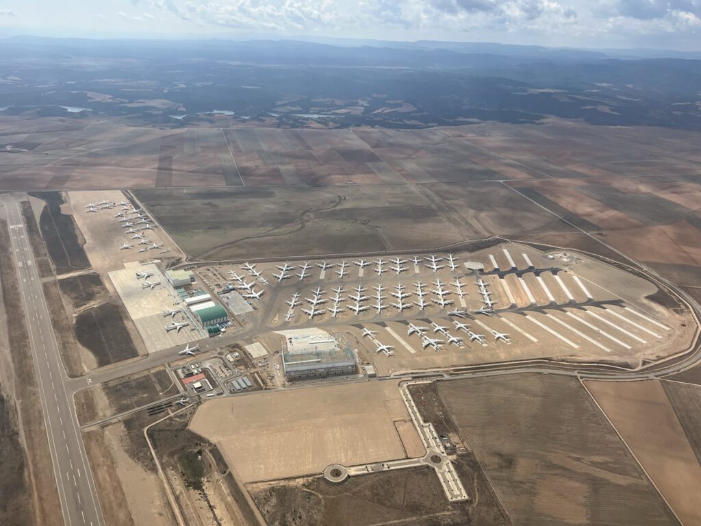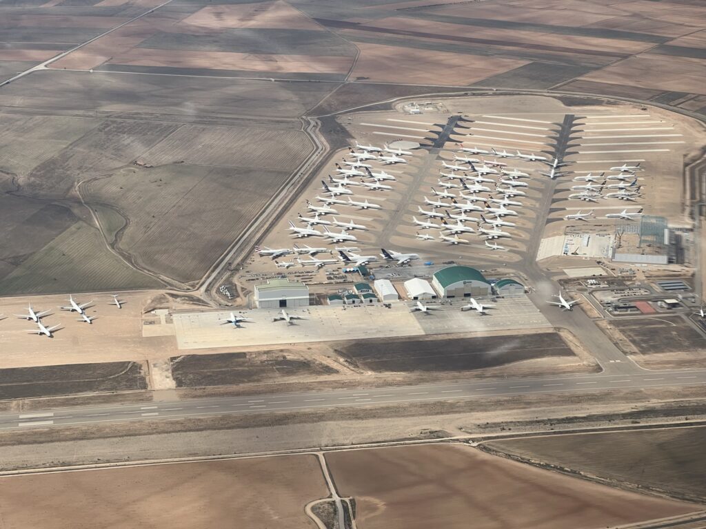 Počasí v den odletu tomu ale chtělo jinak. Vysoká vlhkost vzduchu, společně s vysokým terénem (Španělsko je hornatá země), znamenaly v půlce naší trasy mlhu až na zem. Než se začala rozpouštět, už by nám celá trasa časově nevycházela, a tak jsme naplánovali let rovnou do Valladolidu přes letiště Teruel, kde na svůj další osud čekají desítky velkých dopravních letadel nejrůznějších typů. Vidět takovou letku nečinně stát na zemi bylo poněku smutné…