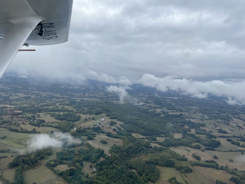 V Biarritzu jsme slíbili navštívit kamarády a nejvhodnější počasí na přelet domů si tak nechali utéct. Věděli jsme, že pod horami se bude déšť a nízká oblačnost střídavě vyskytovat několik následujících dní. Ranní vstávání do mlhy a cesta na letiště v dešti ani nenaznačovaly, že bychom měli ještě ten den někam letět. Věděli jsme ale, že pokud se z Biarritzu dostaneme na letiště umístěné asi dvacet minut letu severněji, máme daleko lepší výchozí pozici pro další let. Jakmile se počasí trochu umoudřilo, šli jsme na věc. Na dvě mezipřistání jsme se dostali až do Clermontu, letiště umístěného pod vyhaslými vulkány, kde jsou dodnes patrné sopečné krátery. Díky recenzím ve SkyDemonu jsme rovnou požádali parkování u místního velmi vstřícného aeroklubu (výrazně levnější než u terminálu), probrali letecké zážitky a těšili se, jak se následující den dostaneme domů.